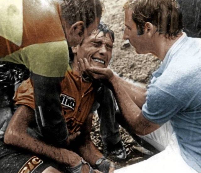 Quel pomeriggio Luis Ocana staccò in salita Eddy Merckx, che si salvò solamente grazie a Giove Pluvio: il temporale, primo segnale del tifo sfacciato degli Dei verso il figlio prediletto.