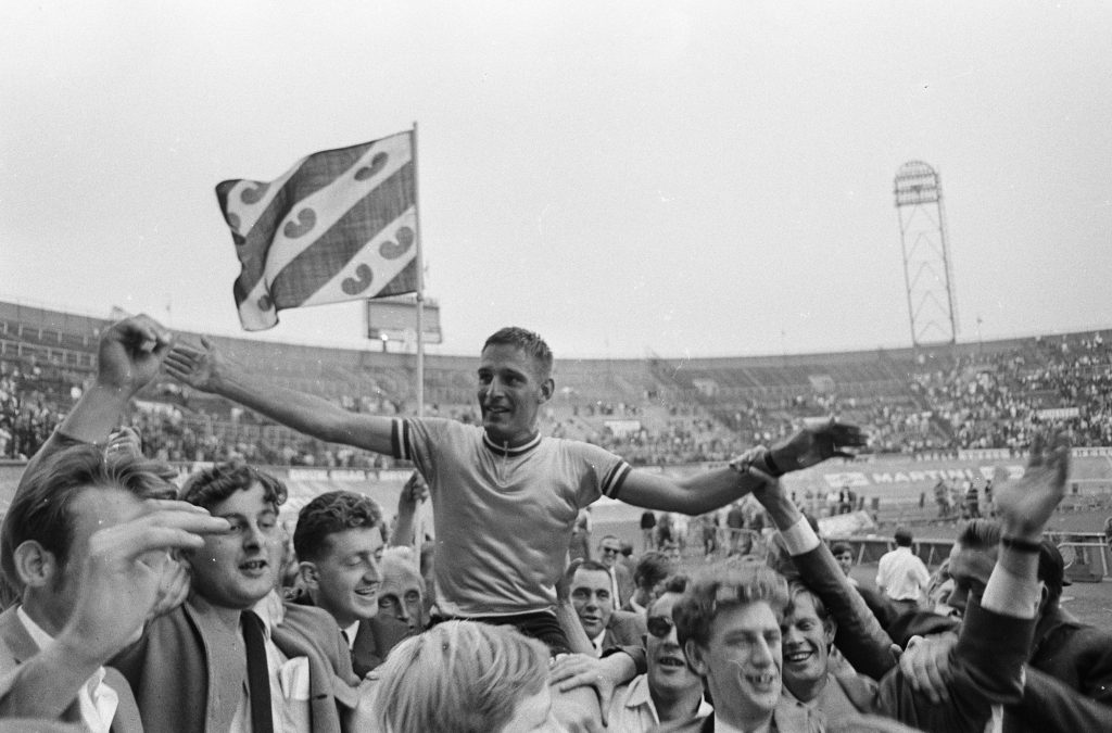 Il fuoriclasse della Frisia bissò l’arcobaleno a San Sebastian (1965) e realizzò la tripletta – incamerando pure il primato mondiale (4’50″21) – a Francoforte.